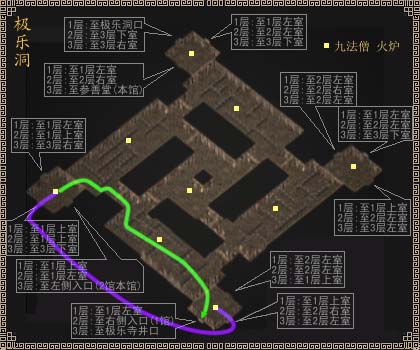 极乐洞,一个千年原版的地图,在2001年的侠众道版本中问世,其中极乐洞里的迷宫地图,让很多玩家头疼,进去之后就迷路,随着可以打开地图,部分玩家会走了,但是还有一大部分玩家,依旧看不懂地图,不知道如何走,下面本千年制作一个详细的图表来详细解读!