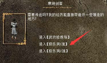 方法2、直接点击中央坐标点,490.493,的寒绝剑客,可直接传送至极乐洞1馆或者2馆,需要2个火龙石作为酬劳。